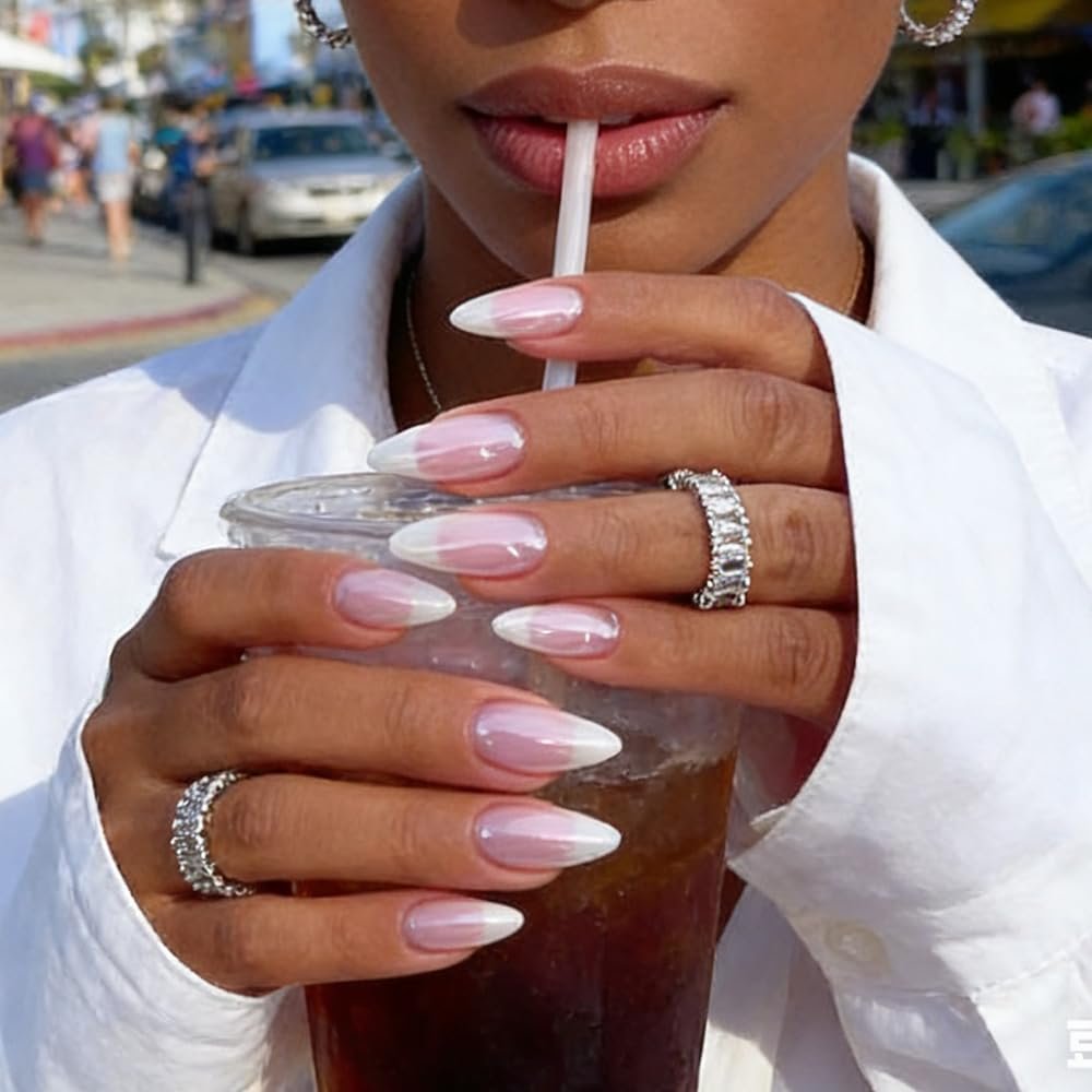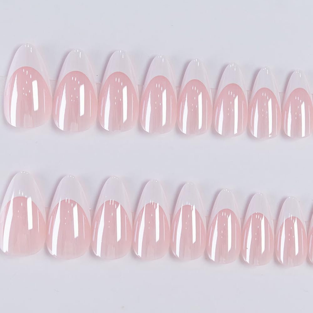 Chrome French Tip Nails Press Ons – Medium Glue on Nails