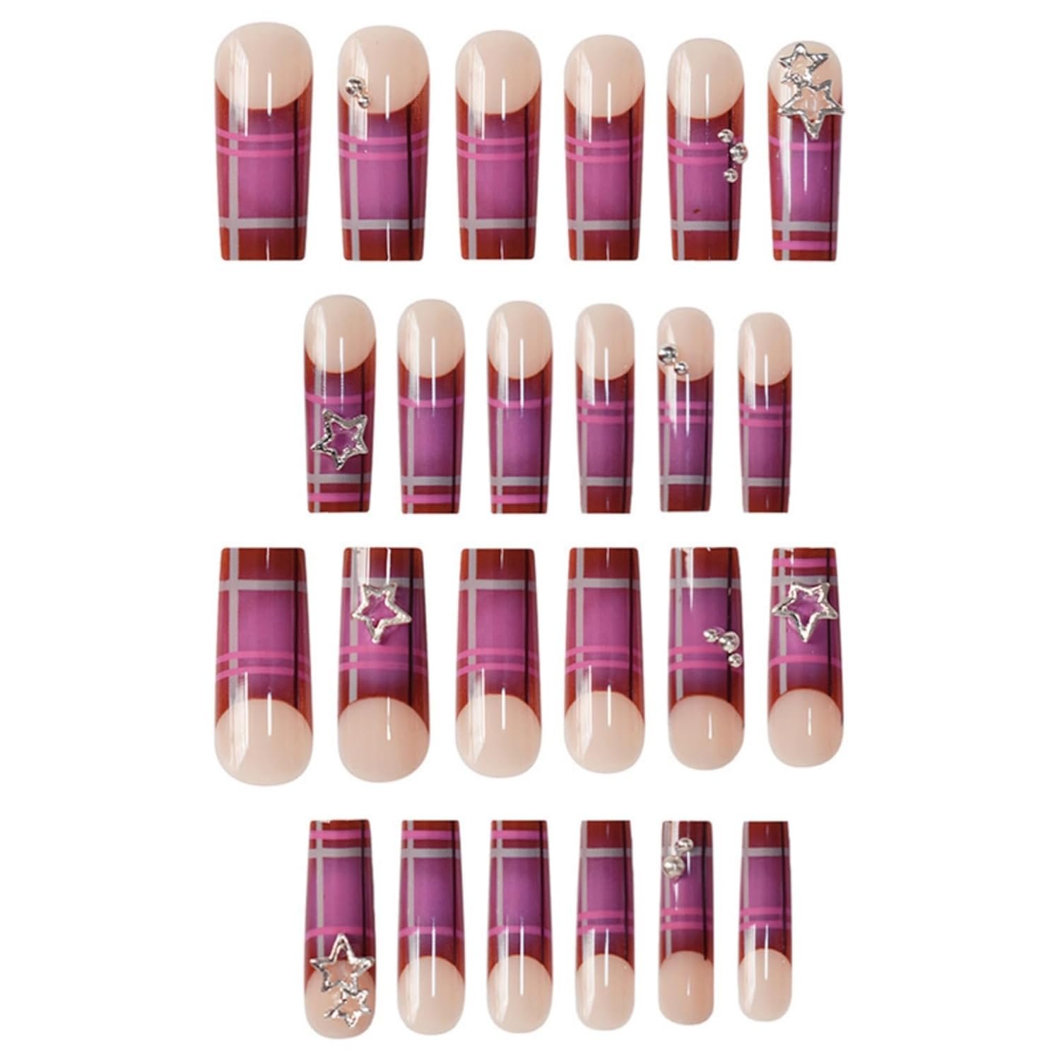 Purple Artificial Nail Silver Charm Stick on Nail for Women
