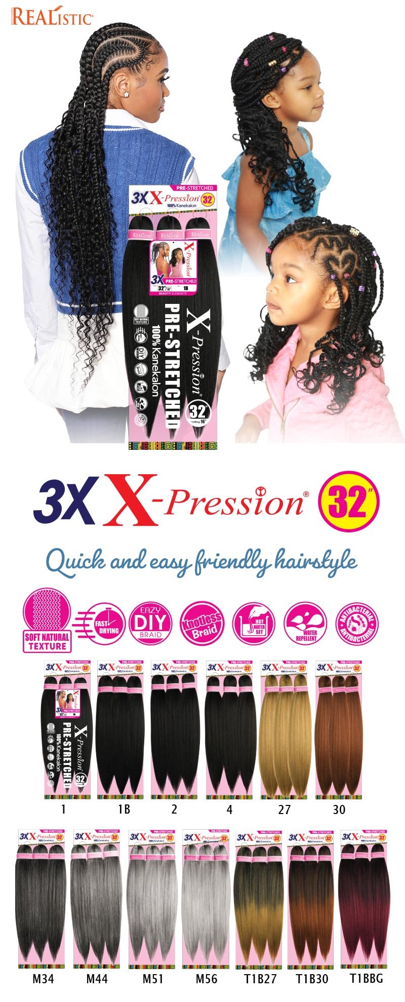 X-Pression 3X braiding hair in 32 ” available in color #2.